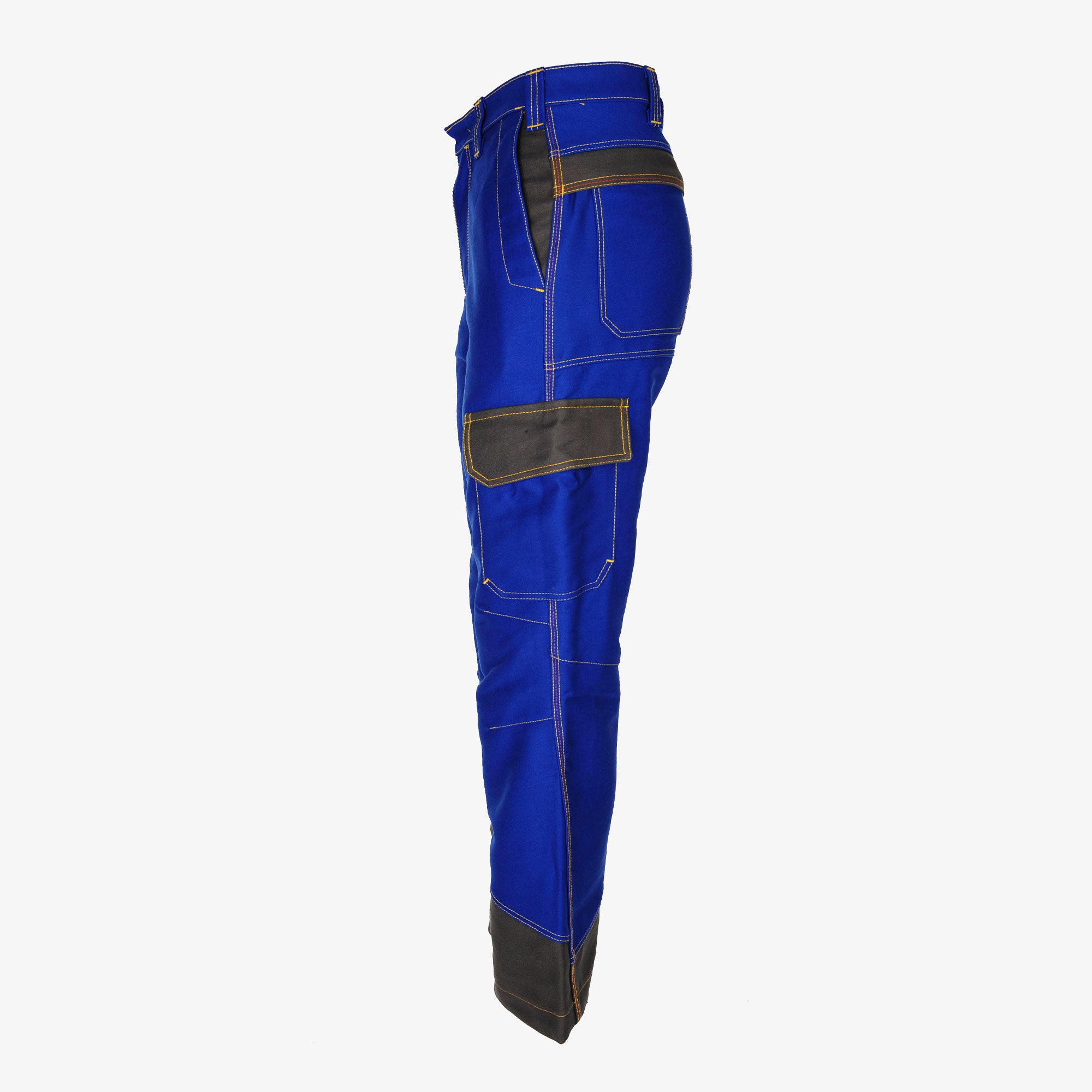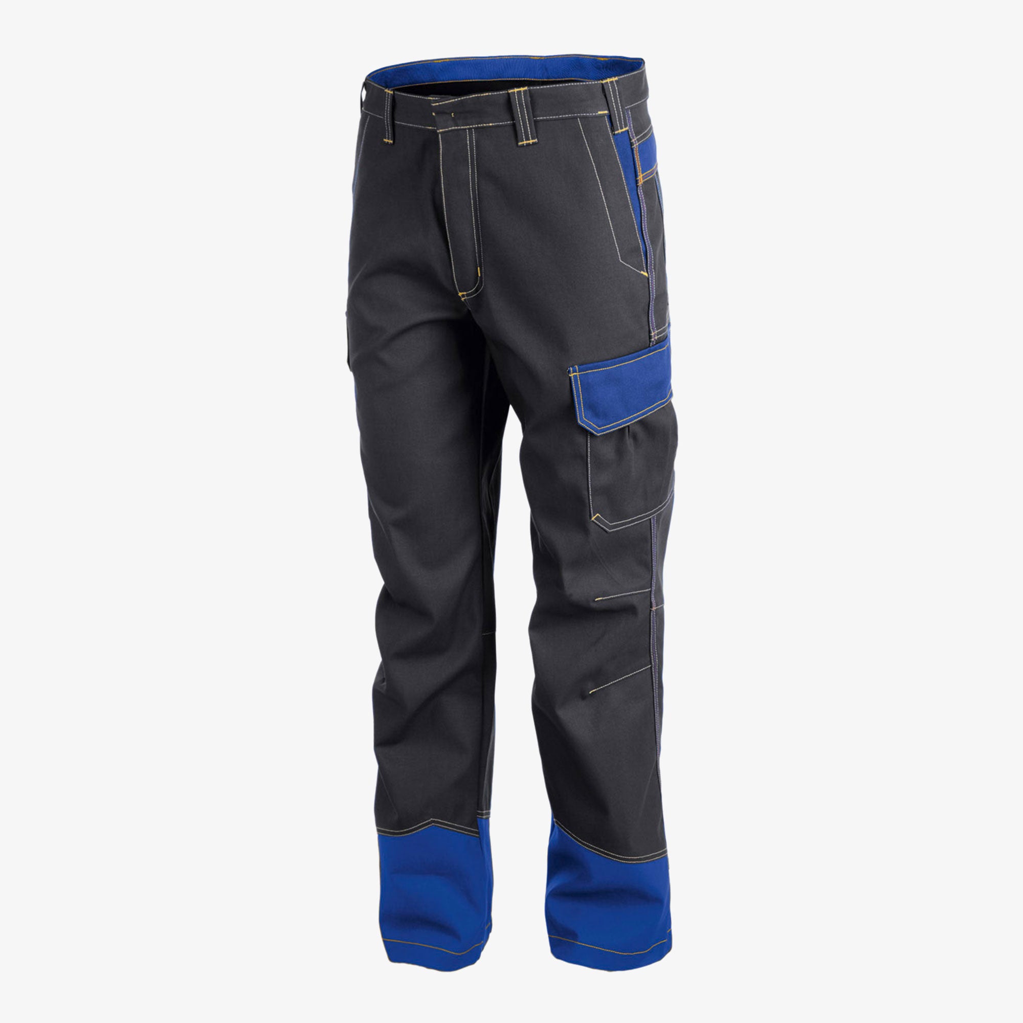 Contrasting elements: pocket opening, back pocket flaps, thigh pocket flap, scale pocket flap, trouser hem
