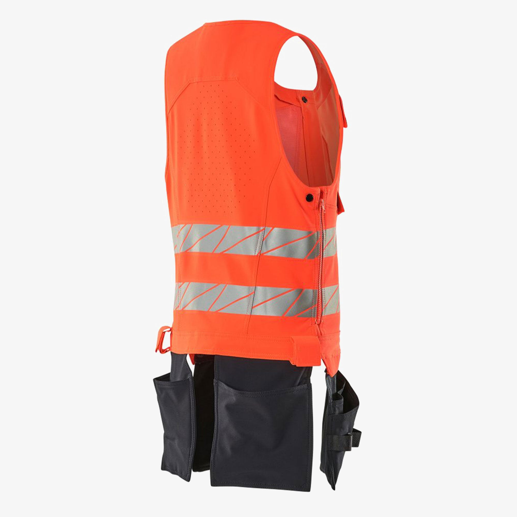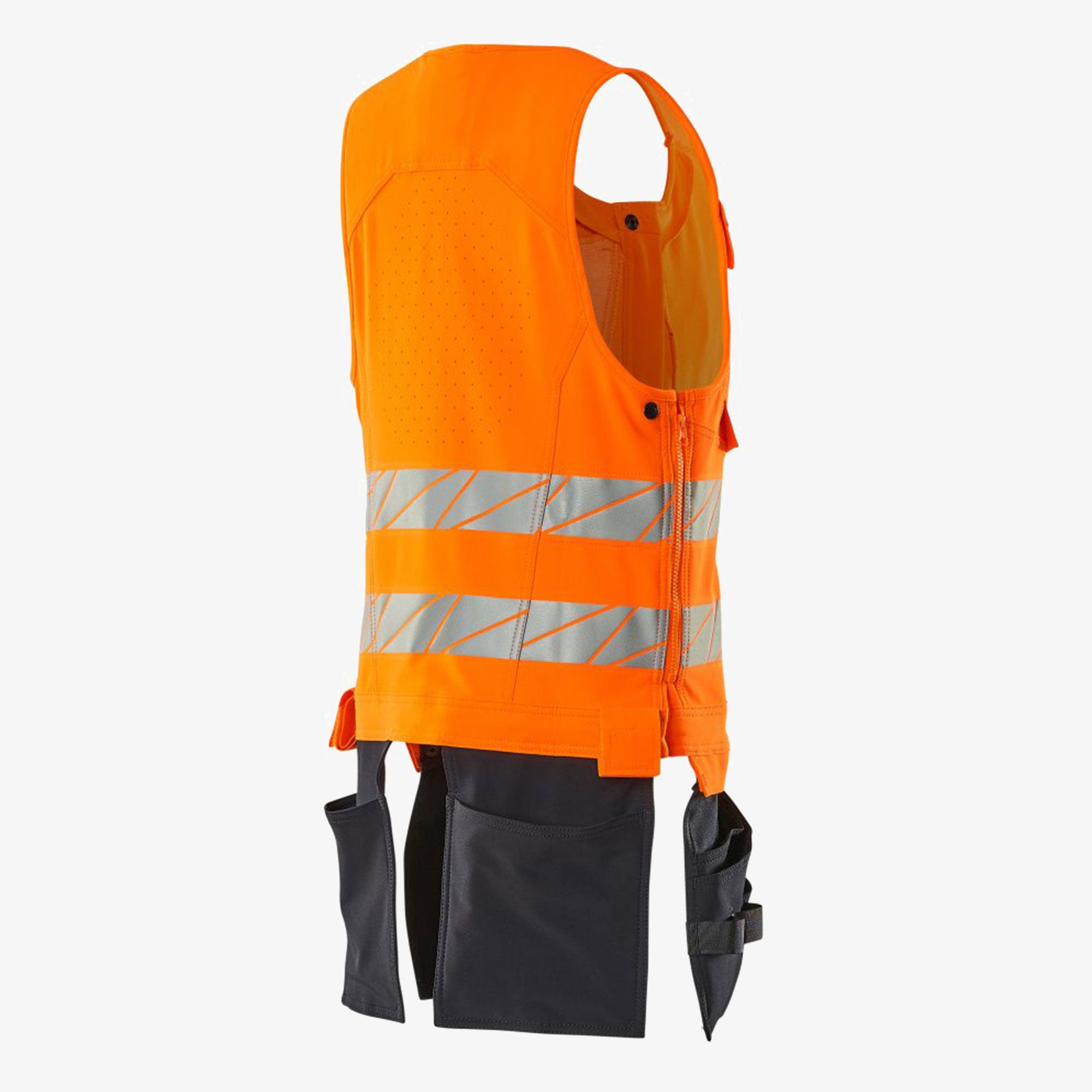 Ventilacija je strateški postavljena na stražnjoj i bočnim stranama prsluka, dok vodootporni patentni zatvaračiosiguravaju zaštitu od vlage i prozračnost tijekom rada. Zahvaljujući podesivim zatvaračima s obje strane, prsluk se može savršeno prilagoditi svakoj figuri.